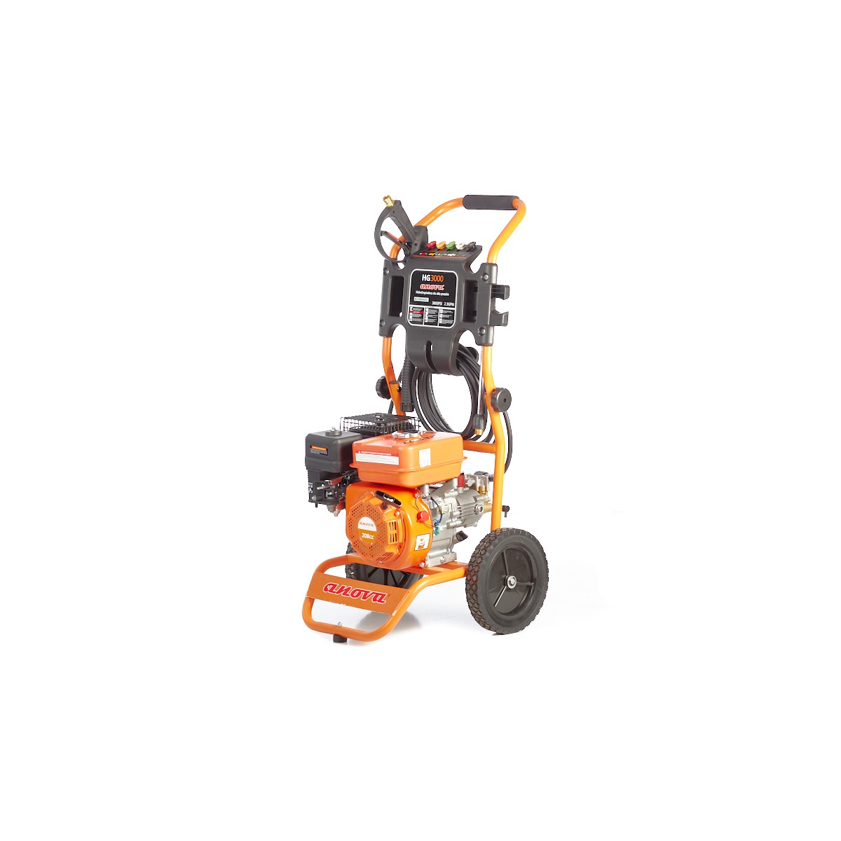 Moteur 4 temps 208cm3Pompe axiale tête bronze - Tête de pompe laitonPression de service 207bars - Débit 522l/hFlexible haute pression 7m5 buses interchangeablesGarantie : 2 ansEnergie : Thermique