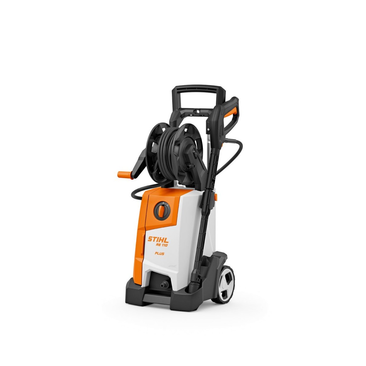 Le RE 110 PLUS est une évolution du nettoyeur haute-pression RE 110, avec notamment une pression maximale plus élevée, un accouplement des buses par système baïonnette, un flexible plus long et un tambour-enrouleur pratique.