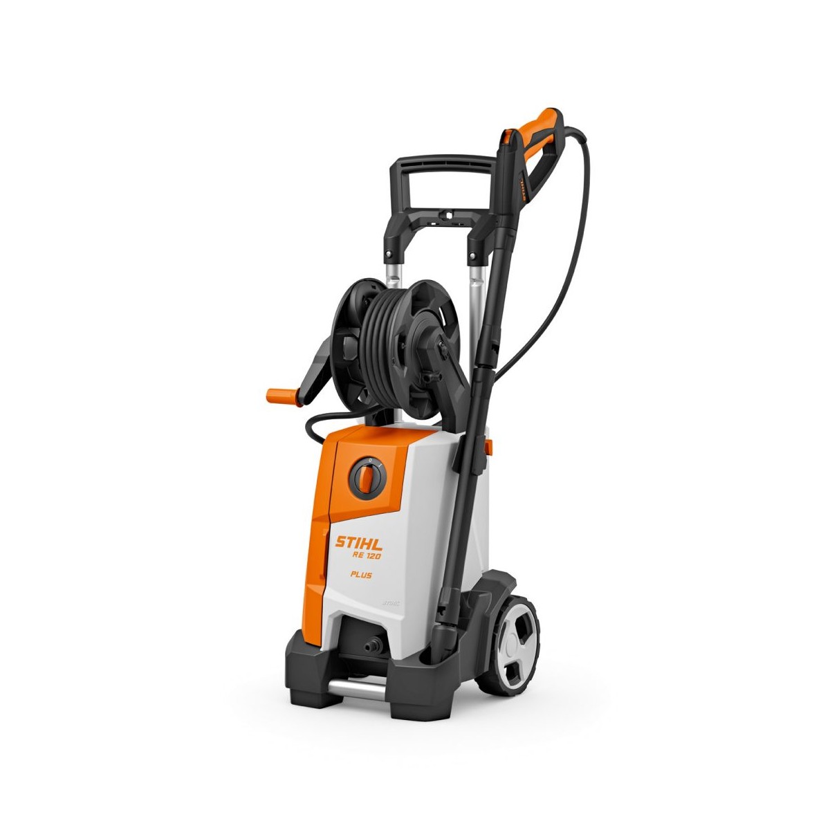 Le RE 120 PLUS est une évolution du nettoyeur haute-pression RE 120, avec notamment une pression maximale plus élevée, un accouplement des buses par système baïonnette, un flexible plus long et un tambour-enrouleur pratique.