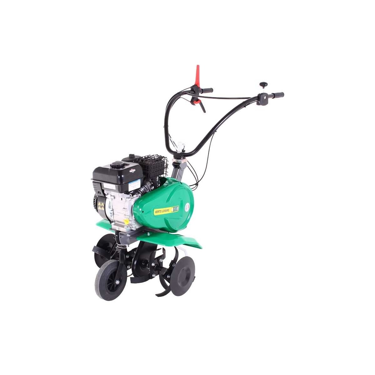 Moteur Briggs&Stratton 550 127cm3Largeur de travail 55cm - Profondeur de travail 29cmRotor 4 fraises démontables standards diamètre 285mm - Disques protège plante1 vitesse avant et 1 arrière - Transmission par chaîne graissée - Pont démontable - Embrayage par tension de courroieRoue de transport avant escamotable - Béquille de terrage - Guidon repliable et réglable en hauteurGarantie : 2 ans