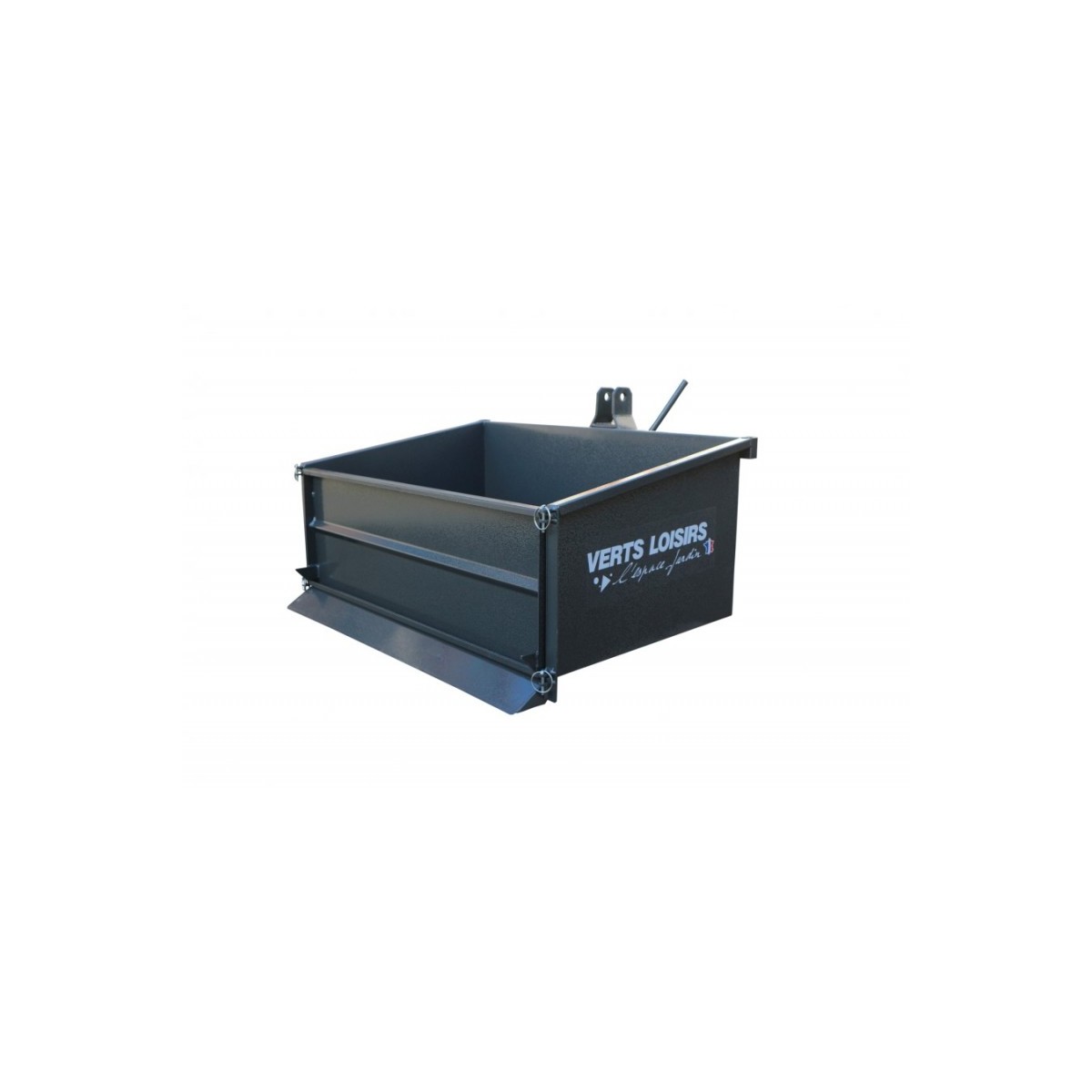 Benne arrière basculante peinte 360 litres pour attelage 3 pointsDimensions : Largeur 140cm / Profondeur 65cm / Hauteur avant 45cm et arrière 35cmEpaisseur tôle 1,5mmPorte double ouverture - Basculement centralRabot autochargeur 10cm - Capacité 250kgGarantie : 2 ans