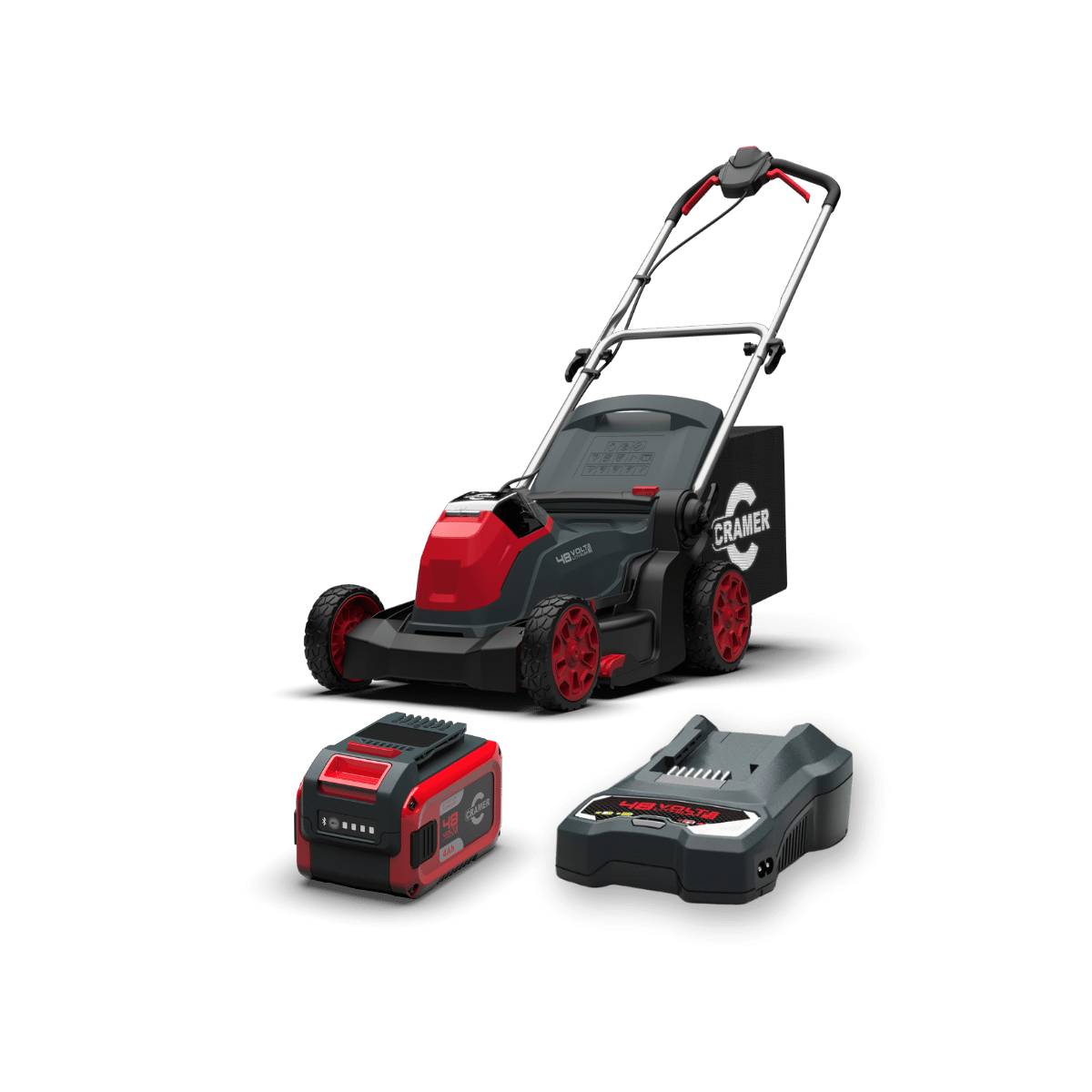Le kit comprend une tondeuse à gazon 48LM41, une batterie 48V192 4Ah, et un chargeur 48C. La batterie, qui fait partie de la gamme de produits 48V de Cramer, est compatible tous les autres outils Cramer 48V, qu'il s'agisse de souffleurs, de taille-haies, de tronçonneuses ou même de débroussailleuses.