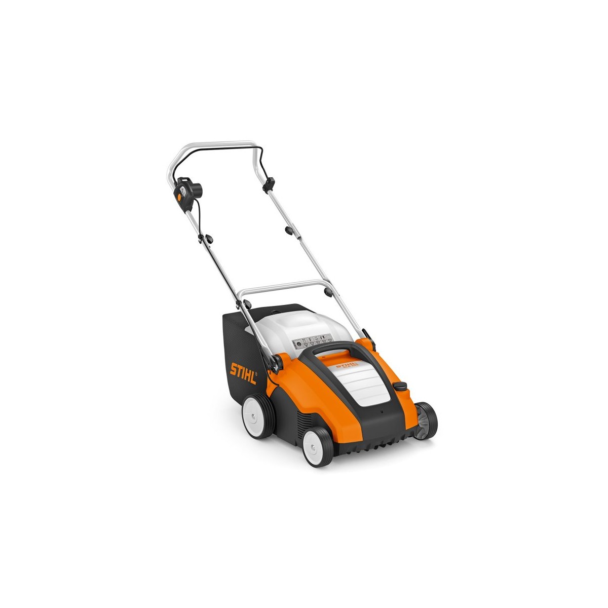 Moteur électrique 230V / 1500WCarter polymère 34cmPousséRotor 10 couteaux - Profondeur de travail réglable en continu jusqu'à 13mmBac de ramassageGarantie : 2 ansEnergie : Electrique