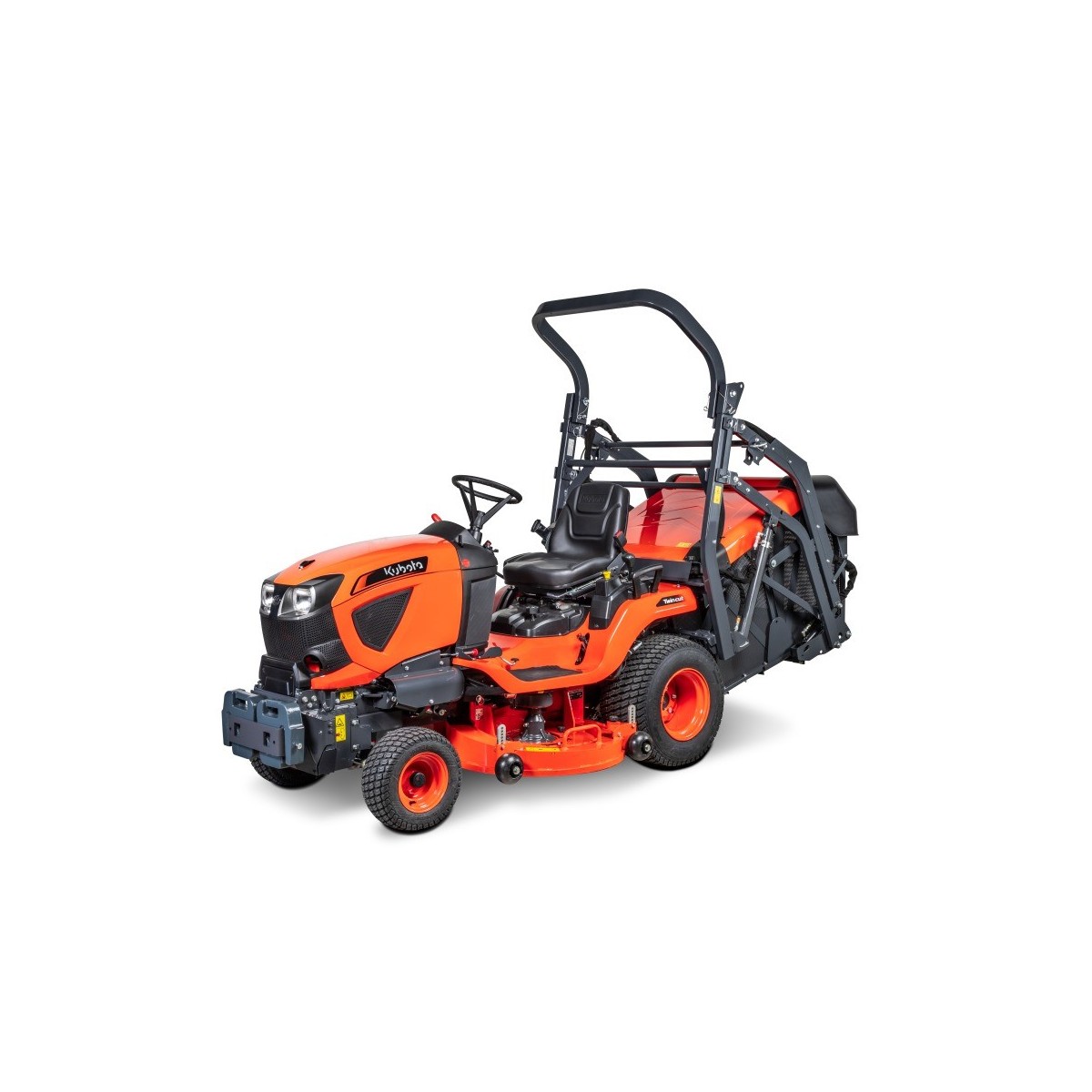 Moteur diesel 3 cylindres Kubota 898cm3 23ch - Refroidissement liquideCarter de coupe acier mécano-soudé 122cm éjection arrière 2 lames - Entraînement mécanique par cardan et engrenages (aucune courroie) - Molette centralisée réglage hauteur de coupe 25 à 102mm - Relevage hydraulique - Bac de ramassage 640 litres vidange hydraulique en hauteur jusquà 1m97Transmission hydrostatique - Entraînement par cardan - Contrôle vitesse au pied pédale unique pour plus de sécurité - Blocage de différentiel - Régulateur de vitesse - Direction assistée hydrostatique - Roues avant 16x7.50-8 / arrière 24x12-12Options : support et conrepoids avant, barre d'attelage, déflecteur d'herbe arrière pour tonte sans ramassage, kit de circulation routeGarantie : 2 ans