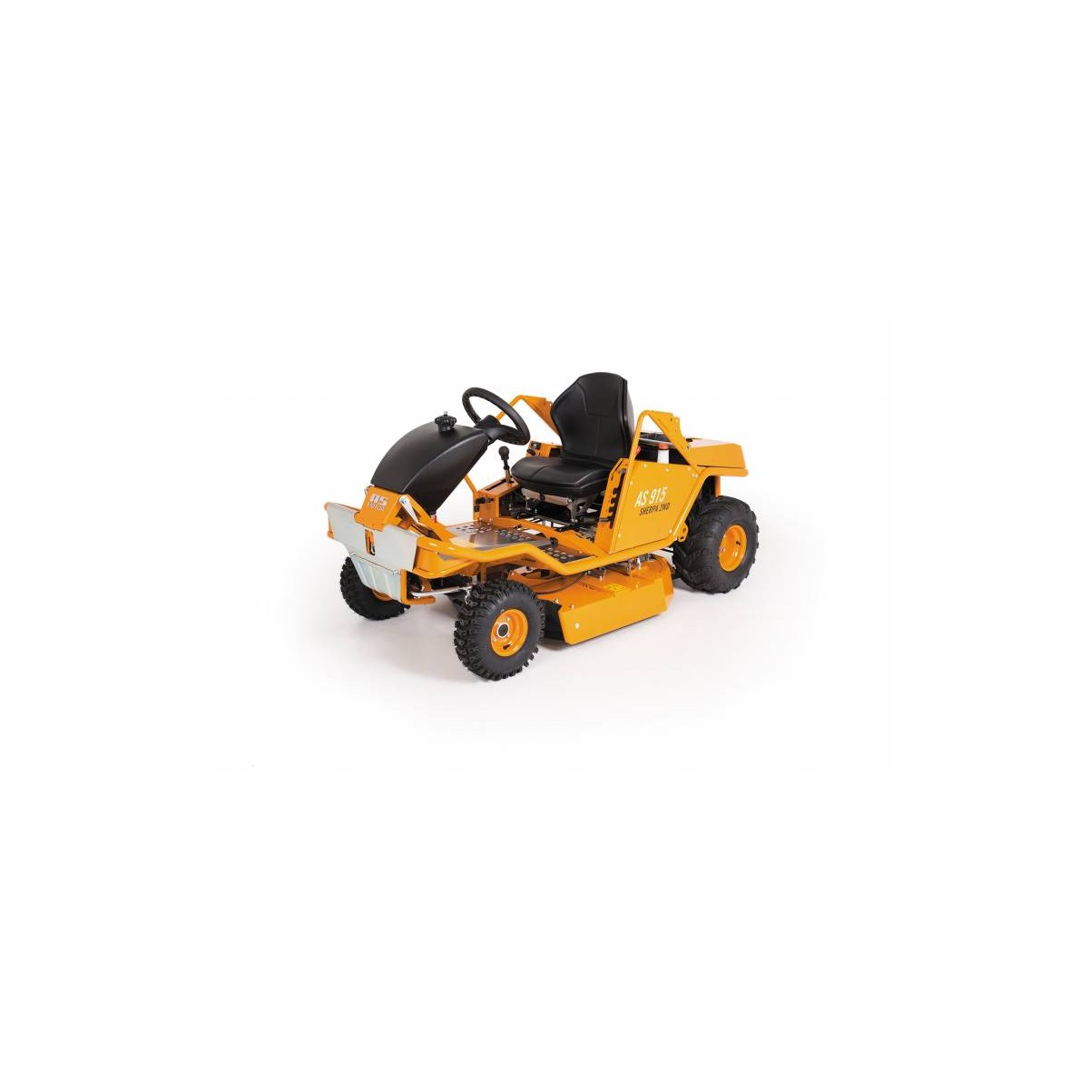 Premier modèle de la famille Sherpa : quand un poste de travail ergonomique rencontre une tondeuse autoportée maniable. Prenez place en classe Sherpa. Un plateau de coupe flottant, un système de lames croisées, un cadre tubulaire périphérique et une commande par levier de conduite à une main sont les marques de fabrique de notre modèle AS 915 Sherpa 2WD. La machine aux multiples talents pour les particuliers ambitieux ou les professionnels. Un moteur robuste et une propulsion confortable. La tondeuse AS 915 Sherpa 2WD est entraînée par un moteur bicylindre Briggs&Stratton de la gamme Professional 7220. Avec sa cylindrée de 656 cm³, le moteur délivre au maximum 22 CV et il est, en outre, équipé d'une pompe à huile et d'une pompe à carburant. La propulsion est hydrostatique, et donc progressive. La commande à une main par le biais du levier de conduite permet de sélectionner des vitesses de 0 à 10,5 km/h en marche avant et de 0 à 8,2 km/h en marche arrière. La particularité : le frein de stationnement mécanique est intégré dans le levier de conduite. Pour une traction supplémentaire, le blocage de différentiel peut être activé à tout moment à l'aide d'une pédale. Plateau de coupe flottant fermé. Équipée d'un système de lames croisées et d'une plaque de tonte fermée, la tondeuse AS 915 Sherpa 2WD broie à la perfection une végétation pouvant atteindre 120 cm de hauteur. Grâce à la suspension flottante, le plateau de coupe s'adapte au sol et préserve ainsi les lames et la pelouse lorsqu'elle franchit une bosse, par exemple. Les hauteurs de coupe sont réglées au centre par paliers dans une plage de 50 à 105 mm. S'asseoir « dans » la machine. Grâce à la position assise enfoncée, l'utilisateur n'est pas assis sur, mais dans la machine, ce qui le protège à la perfection des broussailles, par exemple. Avec le siège baquet réglable en longueur et le vaste espace pour les jambes, même les conducteurs mesurant 1,90 mètres trouvent une position ergonomique. Pour encore plus de confort, un paquet de suspension de siège est disponible en option. Tous les éléments de commande sont disposés de manière logique et accessibles aisément.
