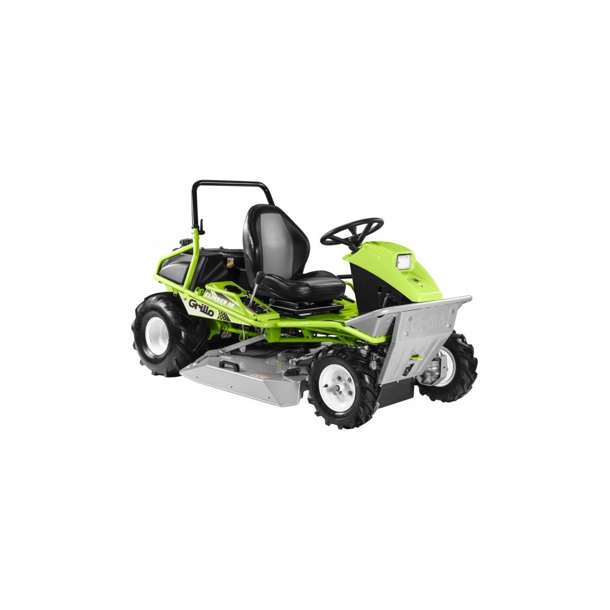Moteur bicylindre Grillo LC2P77F 708cm3Carter de coupe acier 93cm - Ejection arrière et latèraleTransmission hydrostatique - 4 roues motrices - Blocage du différentiel - Pneus agraire - Roues avant traitées anti-crevaisonRéglage hauteur de coupe 6 positions de 35 à 135mm - Siège confort - Arceau de sécurité - Crochet d'attelage - Feu avantRendement 7000m2/heureGarantie : 2 ans
