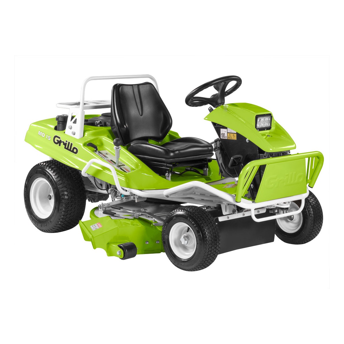 Les tondeuses autoportées Grillo MD à double fonction ont une coupe ventrale en vous permettant une parfait finition même sur les terrains irréguliers et sous les branches des arbres.