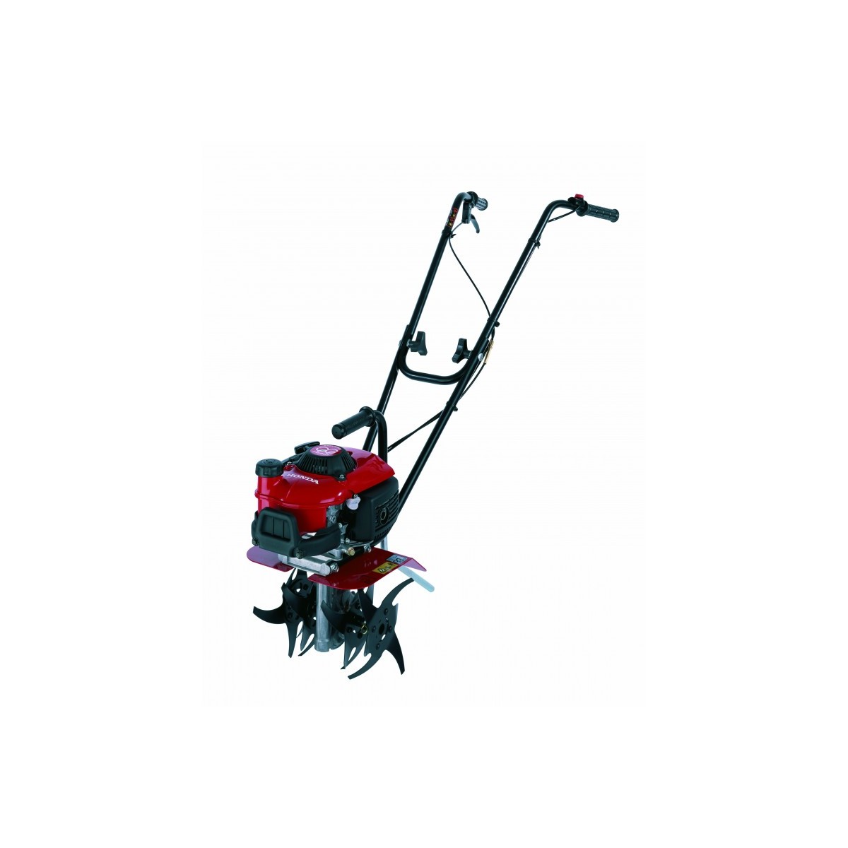 Moteur Honda GXV50 49cm3Largeur de travail 30cmRotor broyage 4 fraises équipées 4 dentsTransmission vis sans fin à haut rendement - Pont aluminium démontable - Embrayage automatique centrifugePoignée et roues de transport - Béquille de terrage - Guidon repliableGarantie : 2 ansEnergie : Thermique