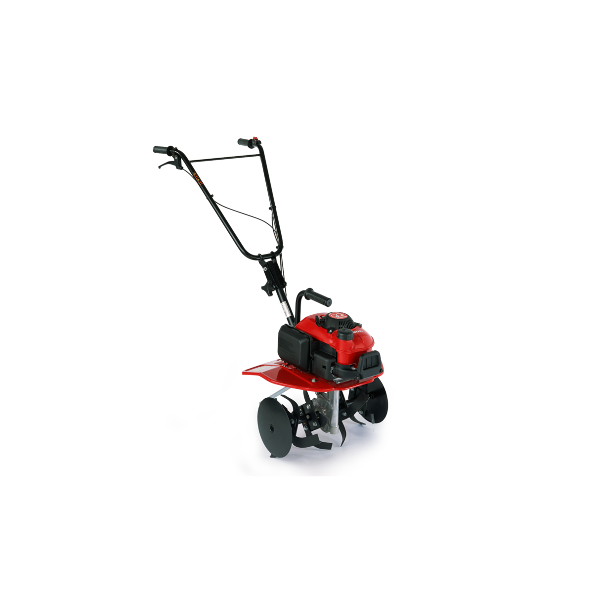 Moteur Honda GXV50 49cm3Largeur de travail 45cmRotor broyage 4 fraises équipées 4 dents - Disques protège planteTransmission vis sans fin à haut rendement - Pont aluminium démontable - Embrayage automatique centrifugePoignée et roues de transport - Béquille de terrage - Guidon repliable et réglableGarantie : 2 ans