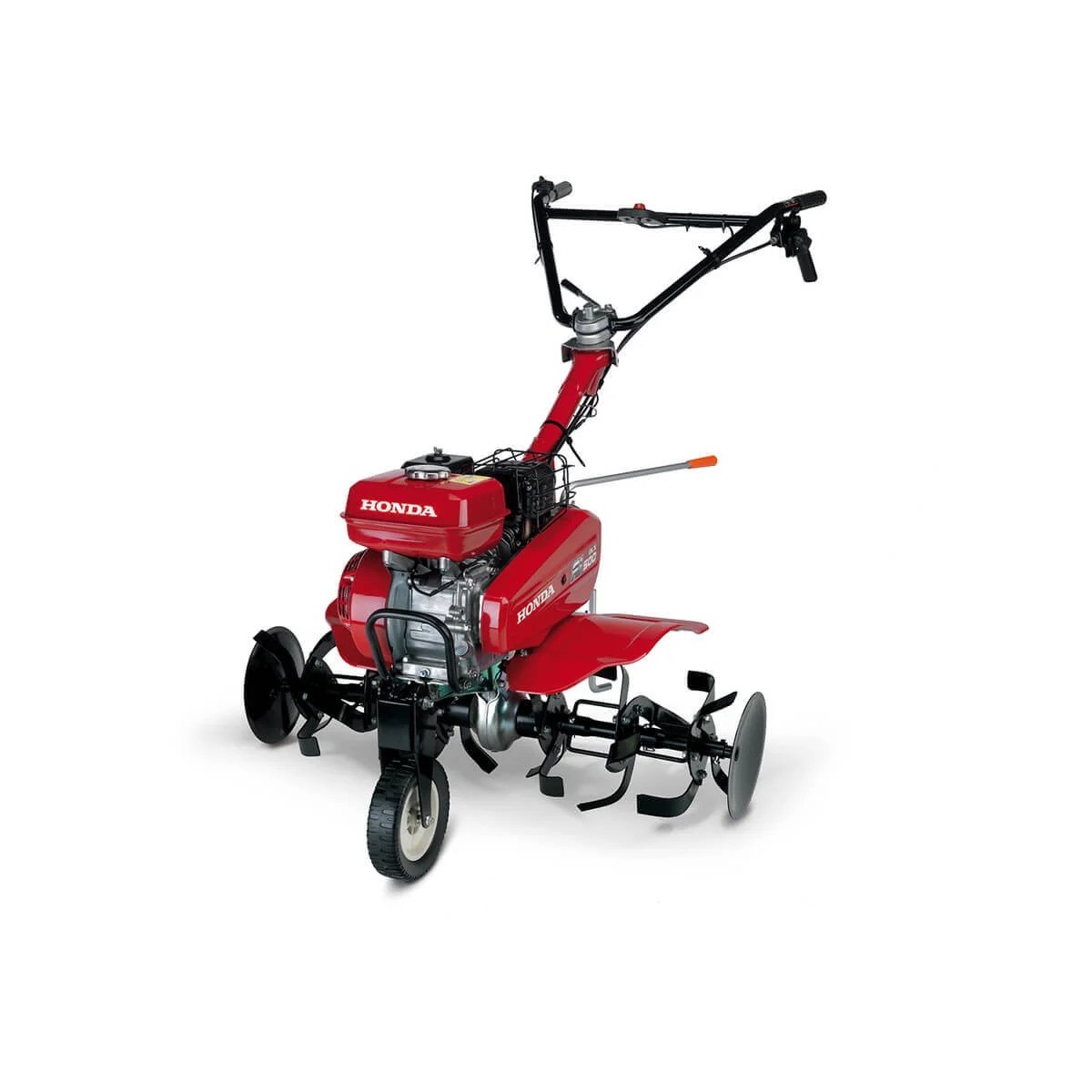 Moteur Honda GX160 163cm3Largeur de travail 80cmRotor 6 fraises équipées 4 couteaux - Disques protège plante2 vitesses avant et 1 arrière - Transmission à pignons - Transmission finale par chaîne graissée - Pont fonte d'aluminium démontable - Embrayage manuel par tension de courroieRoue de transport avant escamotable de série - Béquille de terrage - Guidon repliable et réglable en hauteurGarantie : 2 ansEnergie : Thermique