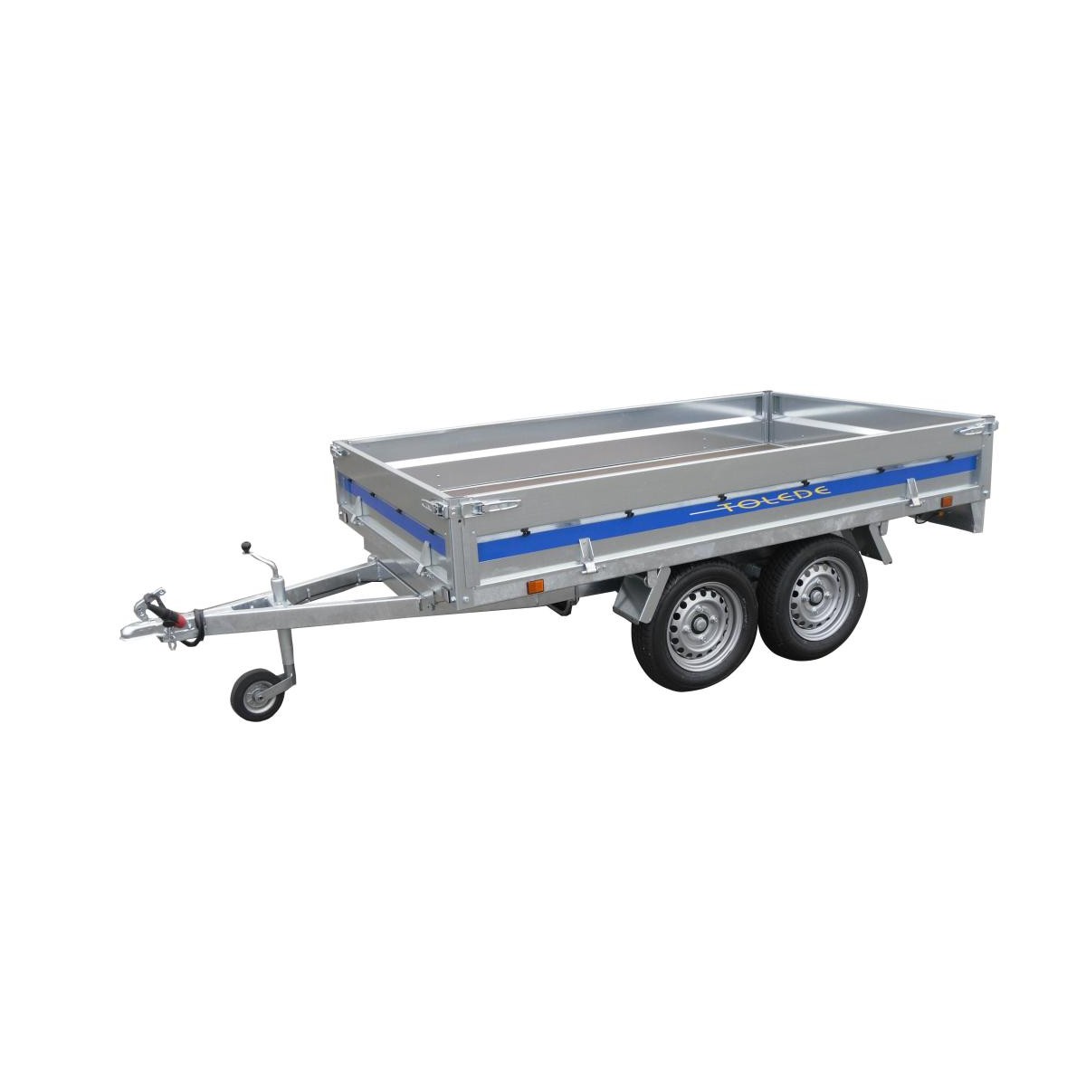 PTAC 500kg - Poids à vide 300kg - Détarage possible 600, 650 et 750kg2 essieux non freinés 750kg - Roues 155/70R13Dimensions utiles 253x147x30cm - Dimensions hors tout 365x159cmTimon en V galvanisé - Châssis soudé galvanisé à chaud - Ridelles tôle galvanisée - Caisse fixe - Plancher bois antidérapant - Ridelles 4 côtés rabattables et amovibles - Roue jockey diamètre 48mmEquipements optionnels : Support et roue de secours - Bâche plate - Réhausses tôle - Réhausse grillagée - Porte-échelleGarantie : 2 ans