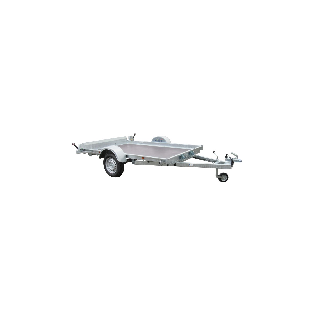 PTAC 500-600-650-750KG - Poids à vide 220kg1 essieu non freiné 750kg - Roues 155/70R13Dimensions utiles 254x161x10cm - Dimensions hors tout 375x213cmTimon en V galvanisé - Châssis soudé galvanisé - Plancher bois antidérapant 12mm - Basculement complet - Mini hayon 20cm - Boucles d'arrimage intérieures - Feux de gabarit sur support souple et feux arrière encastrés - Roue jockey diamètre 48mmEquipements optionnels : Support et roue de secours - Jeu de 3 ridelles 30cm - Réhausse grillagée 70cm - Barre de blocage - Treuil de halage 1200kgGarantie : 2 ans