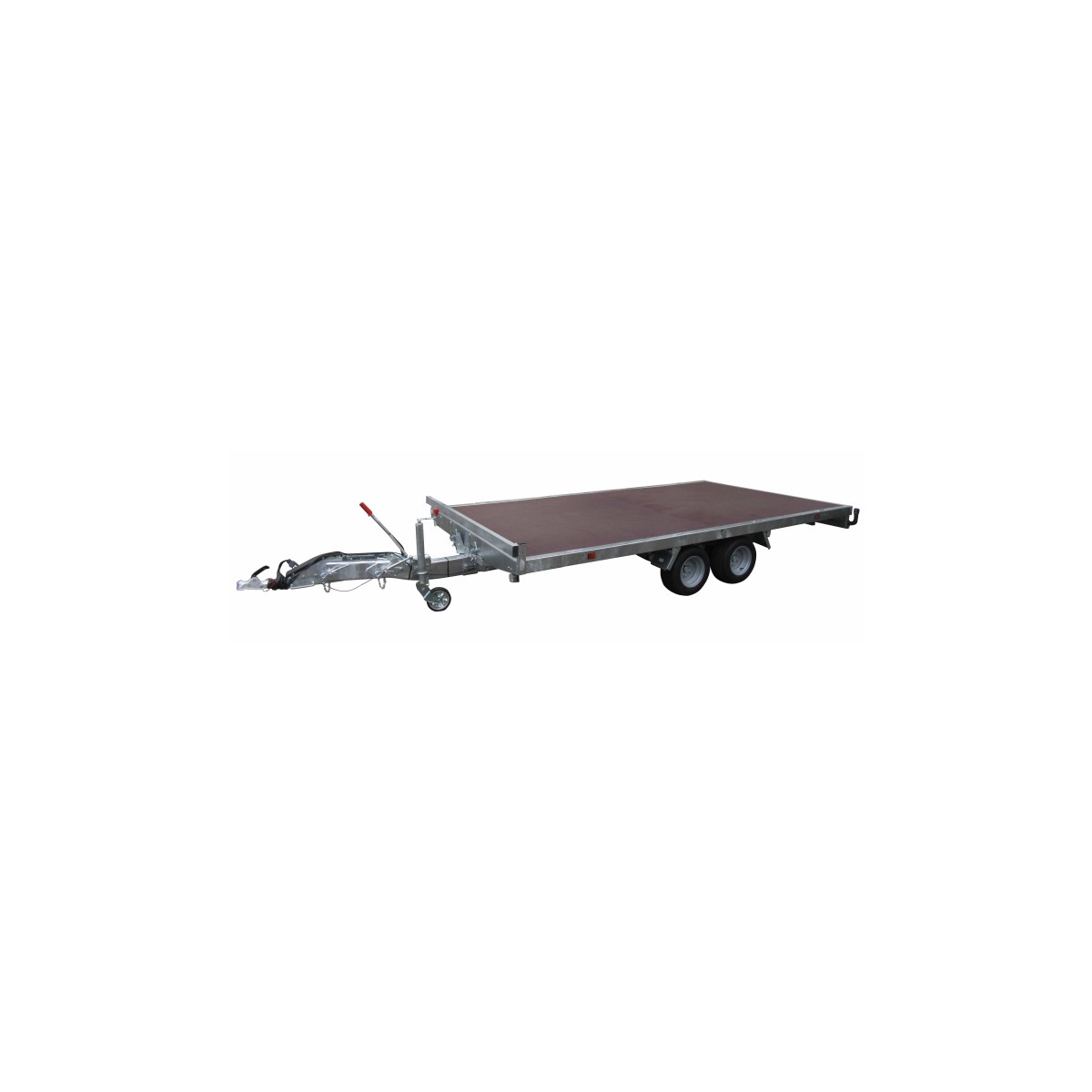 PTAC 1500-1600-1700-1800-1900-2000-2500KG - Poids à vide 660kg2 essieux freinés 1300kg - Roues 195/55-10CDimensions utiles 406x215cm - Dimensions hors tout 580x221cmTimon réglable optima galvanisé - Châssis soudé galvanisé - Plancher bois antidérapant - Basculement hydraulique et hayon 70cm optionnel - Boucles d'arrimage - Feux encastrés - Barre arrêt de charge - Roue jockey diamètre 60mmEquipements optionnels : Support et roue de secours - Basculement hydraulique et hayon - Jeu ridelles alu 35cm - Réhausse grillagée 60cm - Main courante rabattable - Cale 2m02 + rails - Treuil de halage 1600kg + supportGarantie : 2 ans