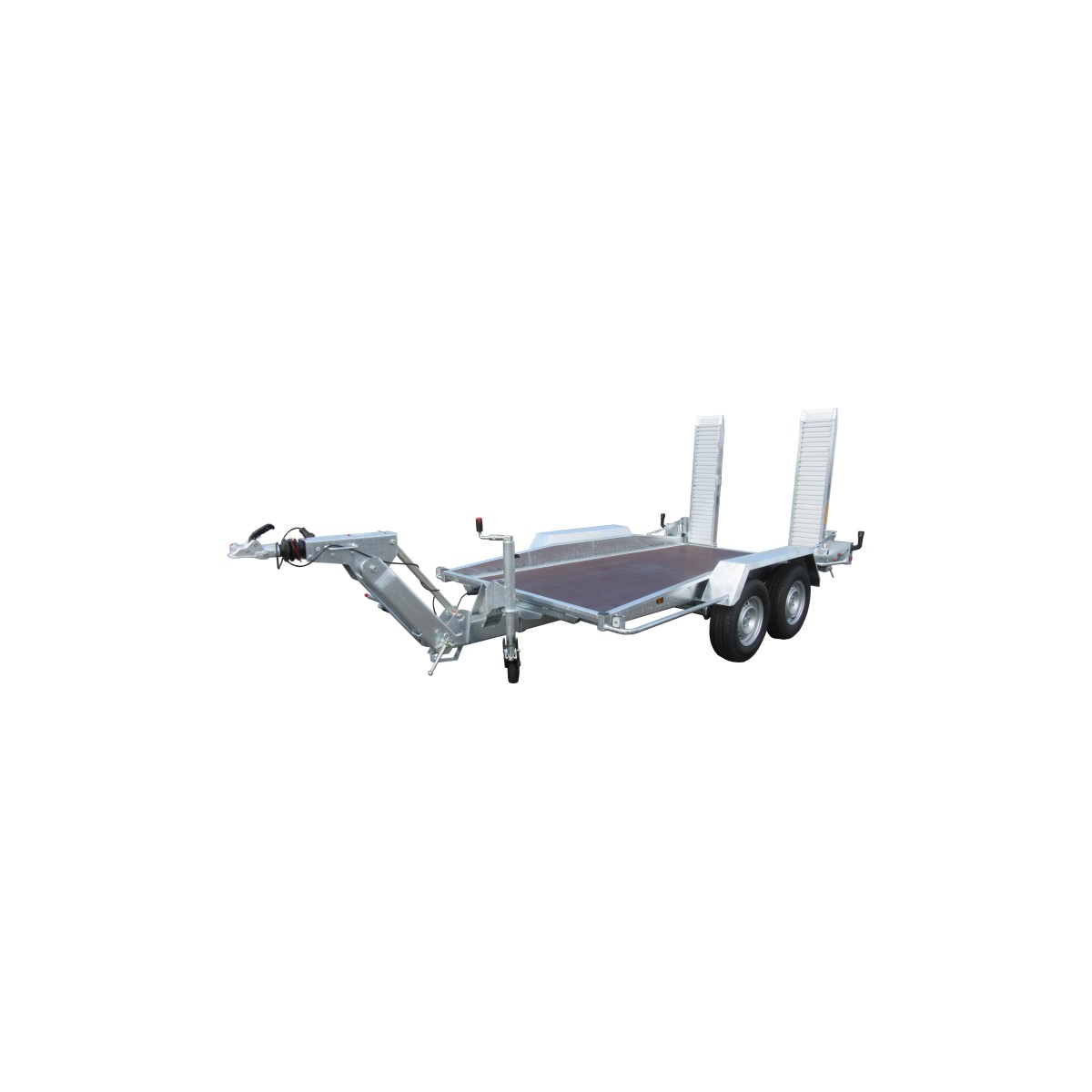 PTAC 2700-3000-3500KG - Poids à vide 670kg2 essieux freinés 1800kg - Roues 195R14CDimensions utiles 350x170x8/18cm - Dimensions hors tout 574x230cmTimon réglable optima - Freinage à inertie - Châssis soudé galvanisé - 2 rampes alu 35x160cm avec écartement réglable - Béquilles arrière - Plancher bois antidérapant 18mm - Feux led encastrés - 4 points d'arrimage - Roue jockey diamètre 60mmEquipements optionnels : Roue de secours et support - Barre d'arrêt - Kit 1 chaîne d'arrimage - Abaisseur de tension - Anneau Alko 68x42Garantie : 2 ans